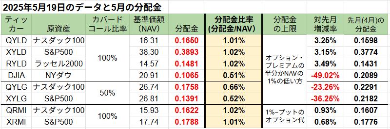 | 毎 | QYLG | 27.6 | NASDAQ100の50%をカバードコール | 05/19 | 05/27 | G |